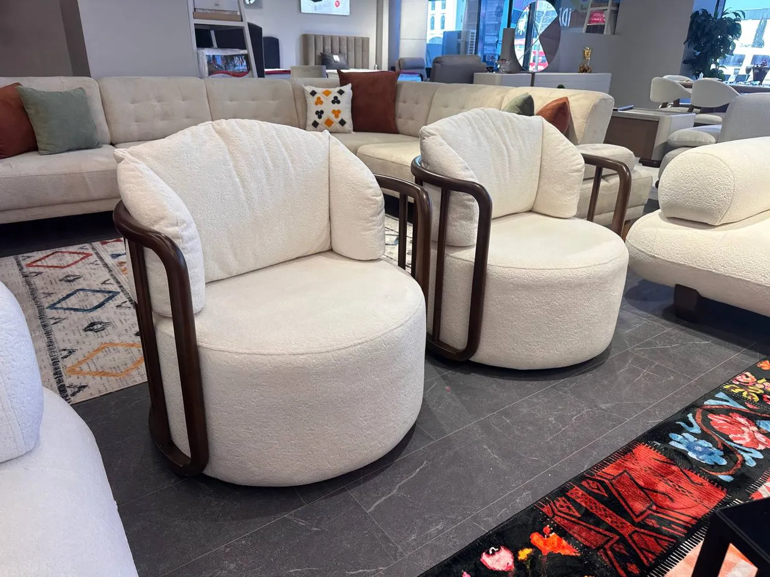 Ahşap detaylı kol yapısı ve güçlü ayak formu tasarıma doğal bir zarafet katarken sağlam ve uzun ömürlü kullanım sunar.
